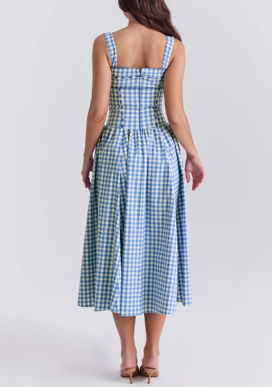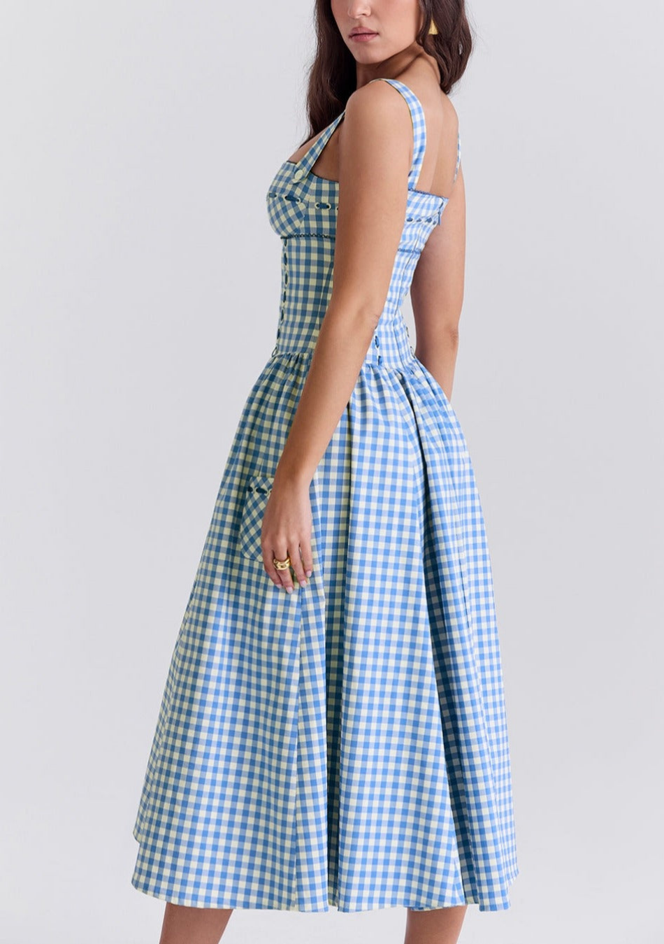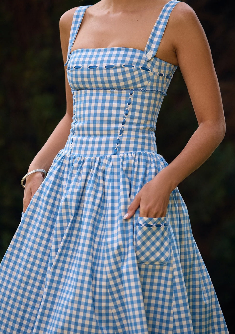 The Lily Checkered Midi Sundress offers a perfect balance of modern style and timeless appeal, making it a must-have addition to your wardrobe.